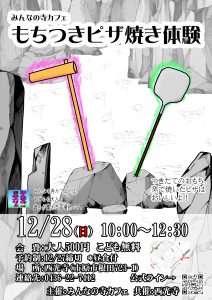 12月寺カフェは毎年恒例の餅つきピザ焼きです。が。一日で予約が埋まりました。つきたてのお餅とトッピングからできるピザ焼きは美味です。